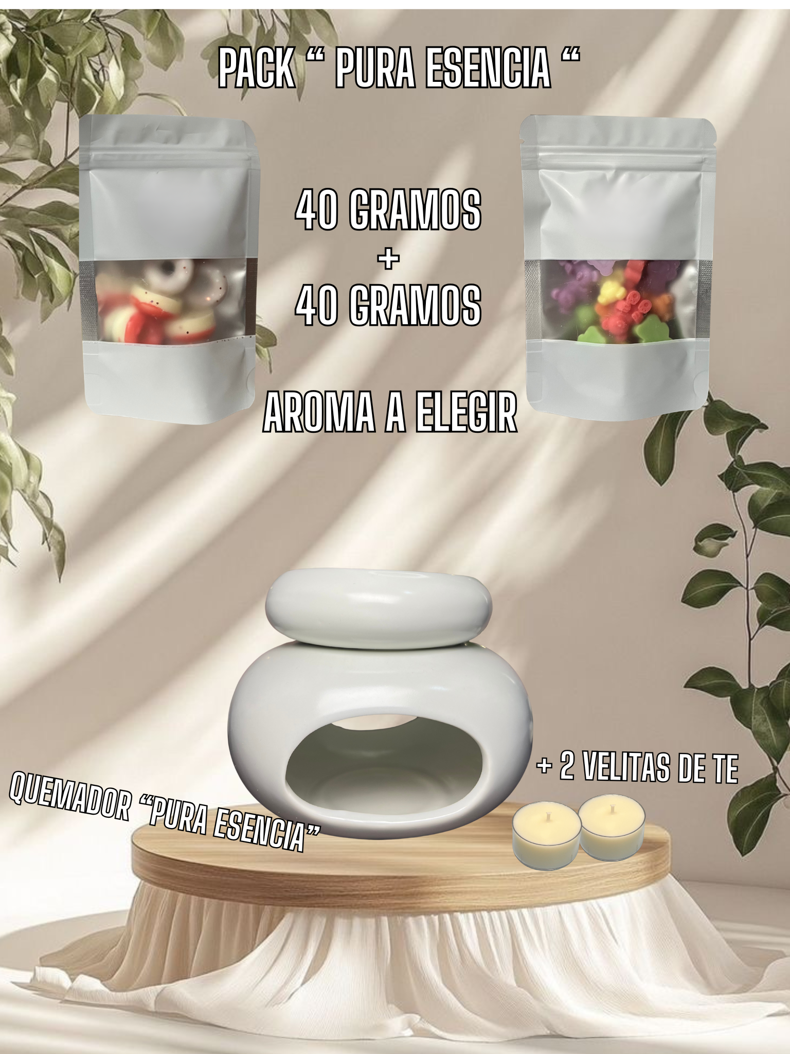 El Pack Pura Esencia está pensado para quienes buscan una experiencia aromática suave, elegante y armoniosa. Incluye nuestro precioso quemador cerámico blanco, dos aromas a elegir y velitas de té para disfrutarlo desde el primer instante.