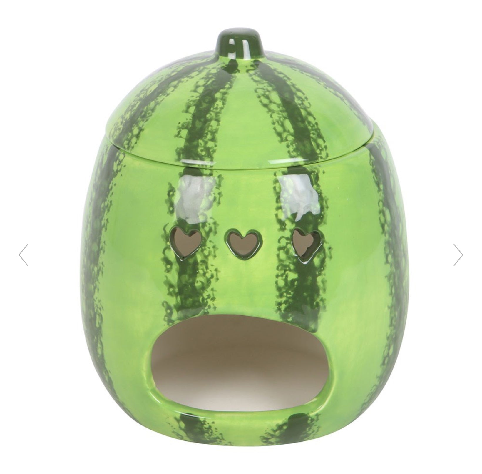 Dale un toque de dulzura a tu espacio con este divertido quemador de aceite y calentador de cera con forma de sandía jugosa. Simplemente levanta la tapa para descubrir el recipiente, perfecto para difundir tus fragancias favoritas. Funcional y adorable, esta pieza también es un encantador elemento decorativo para cocinas, salas de estar y más.